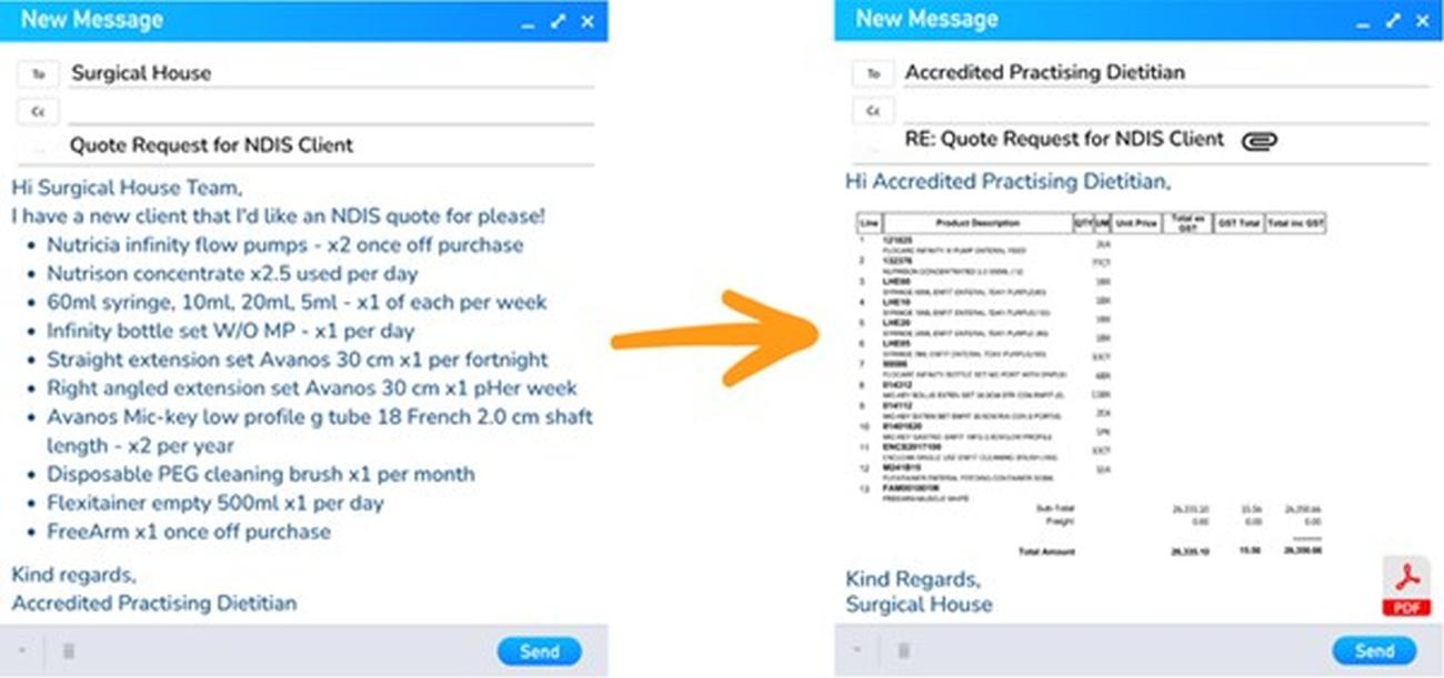 Surgical House’s knowledgeable Customer Care Team offers the in-house expertise to prepare accurate, timely, NDIS-ready quotes for your clients directly from your clinical recommendations – reducing your administrative burden and allowing you to spend more time on providing direct client care.